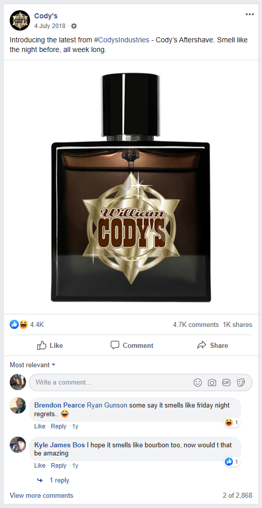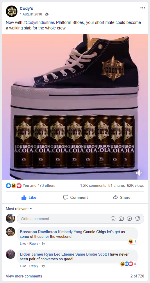 Like a proud Cody’s drinker we had to be a little rough around the edges. We had to make it look like we were making jokes, or memes, that anyone could slap together and share with their mates.